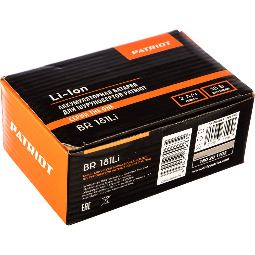 Аккумулятор для BR 181Li (18 В; 2.0 А*Ч; Li-ion) PATRIOT 180201102