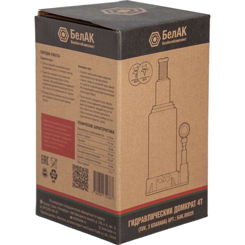 Домкрат БелАК 4 т, TUV, 2 клапана БАК.00028