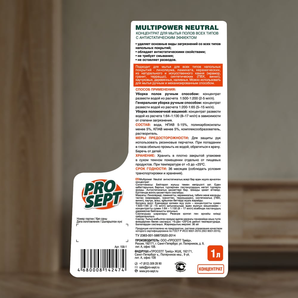 | Расход | Уборка полов ручным способом: концентрат развести водой 2-5 мл/л.Уборка полов поломоечной машиной: концентрат развести 8–17 мл/л |