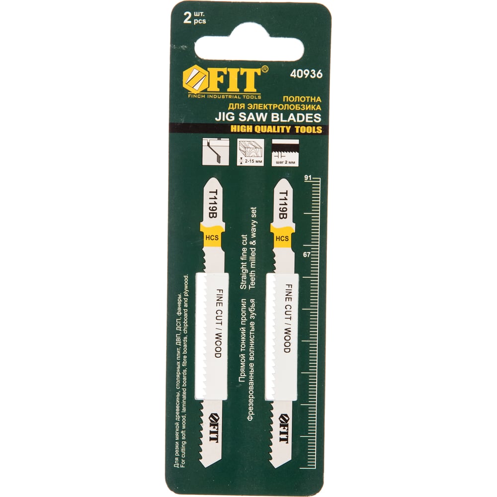 Полотно по дереву T119B (2 шт; 91х67 мм; шаг 2 мм) для электролобзика FIT HQ 40936