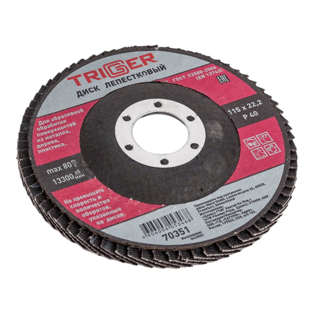 Диск лепестковый по металлу (115х22 мм; P40) для УШМ ТРИГГЕР 70351 тов-158861