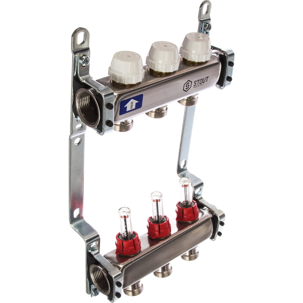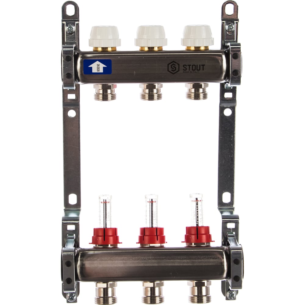 Коллектор из нержавеющей стали с расходомерами 3 вых. STOUT SMS 0917 000003