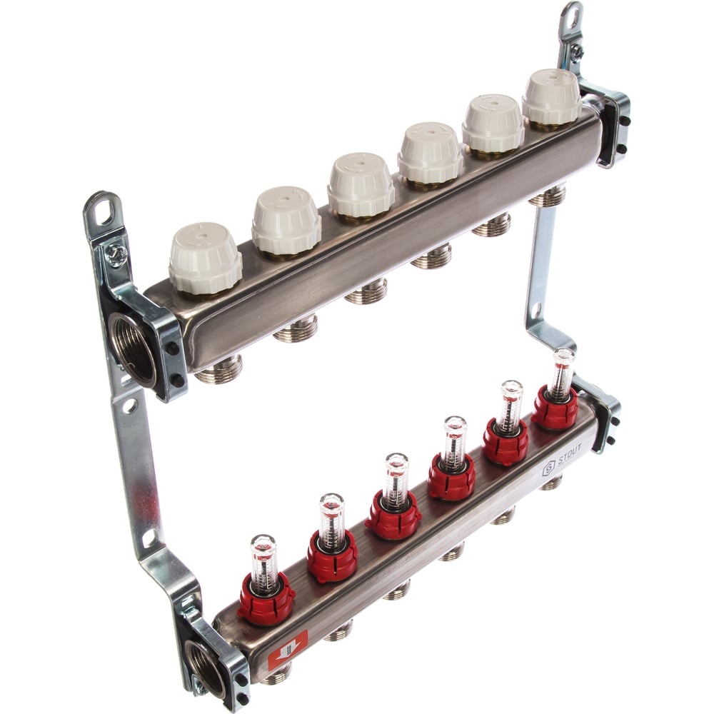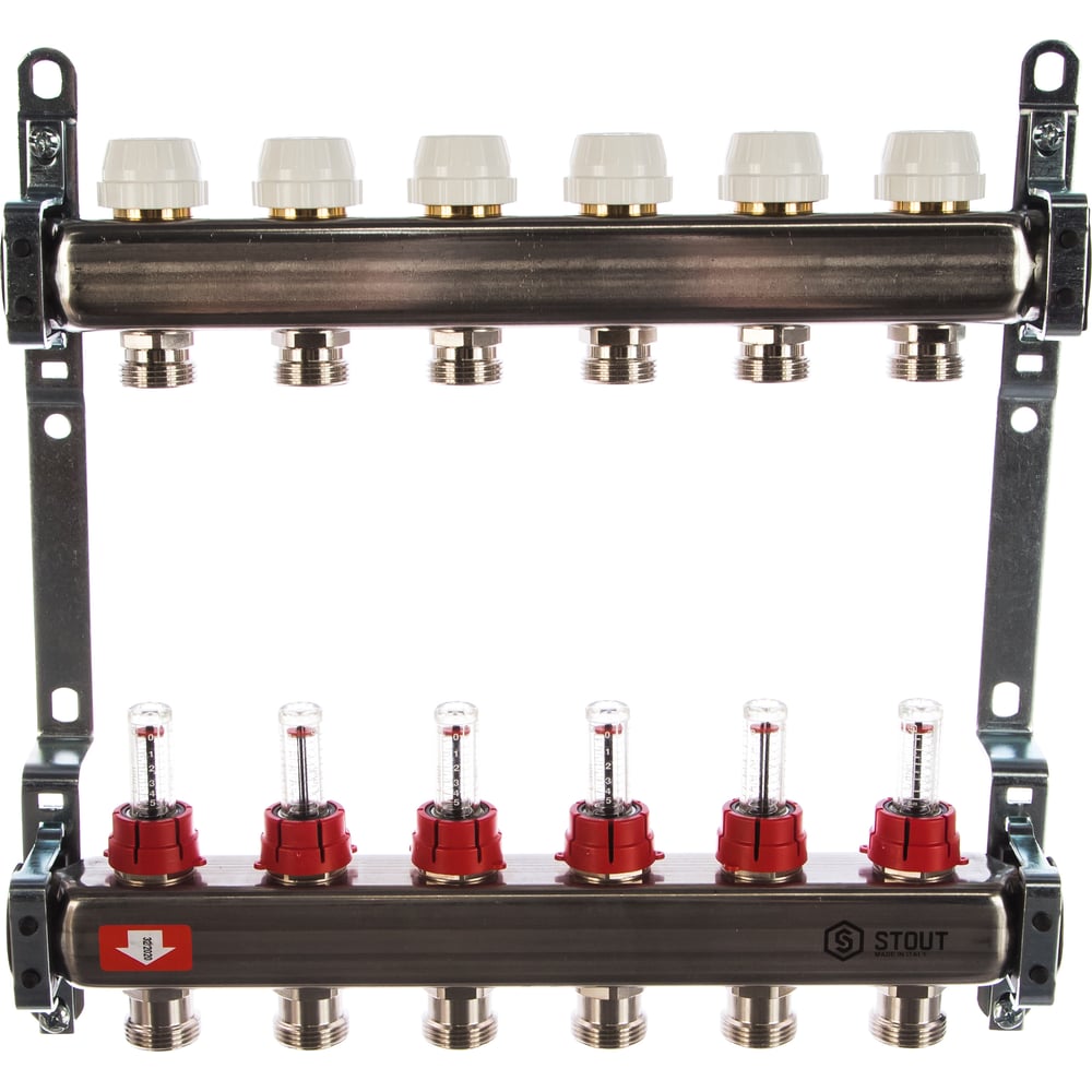 Коллектор из нержавеющей стали с расходомерами 6 вых. STOUT SMS 0917 000006