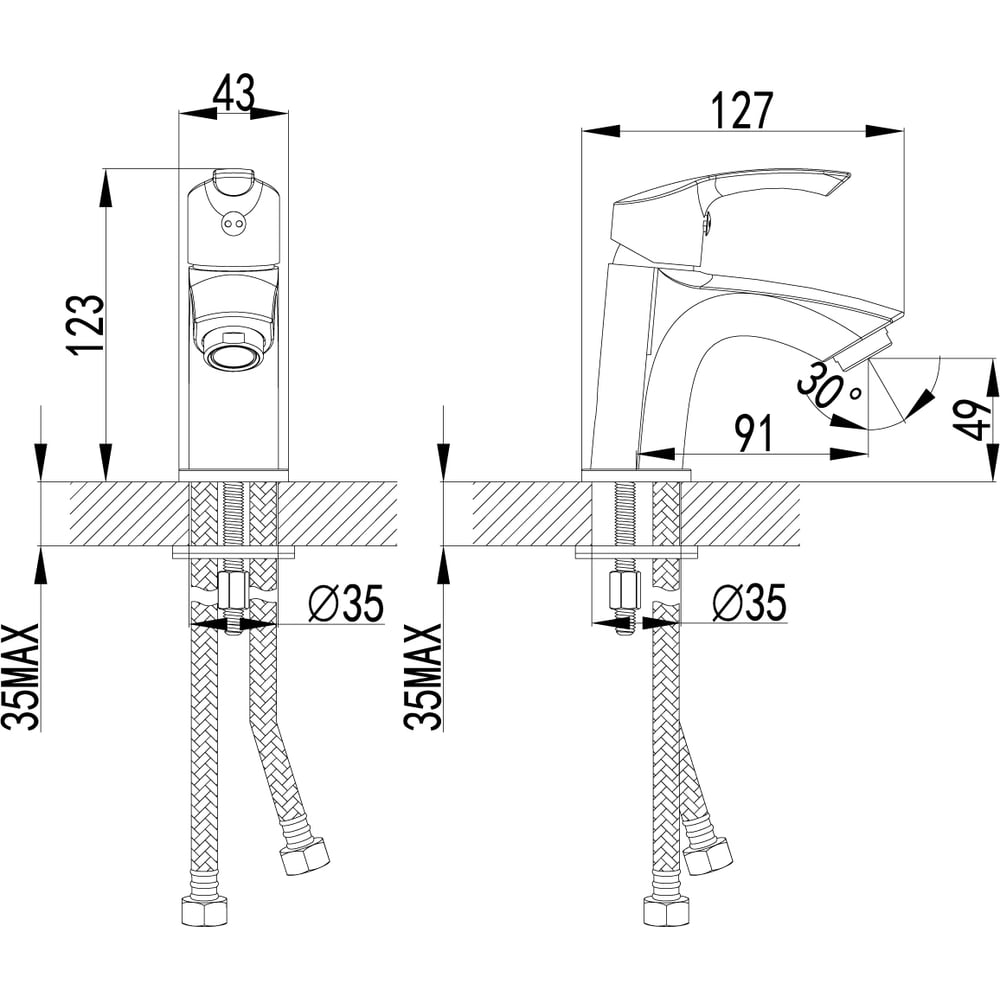 | Диаметр отверстия в раковине | 35 мм |