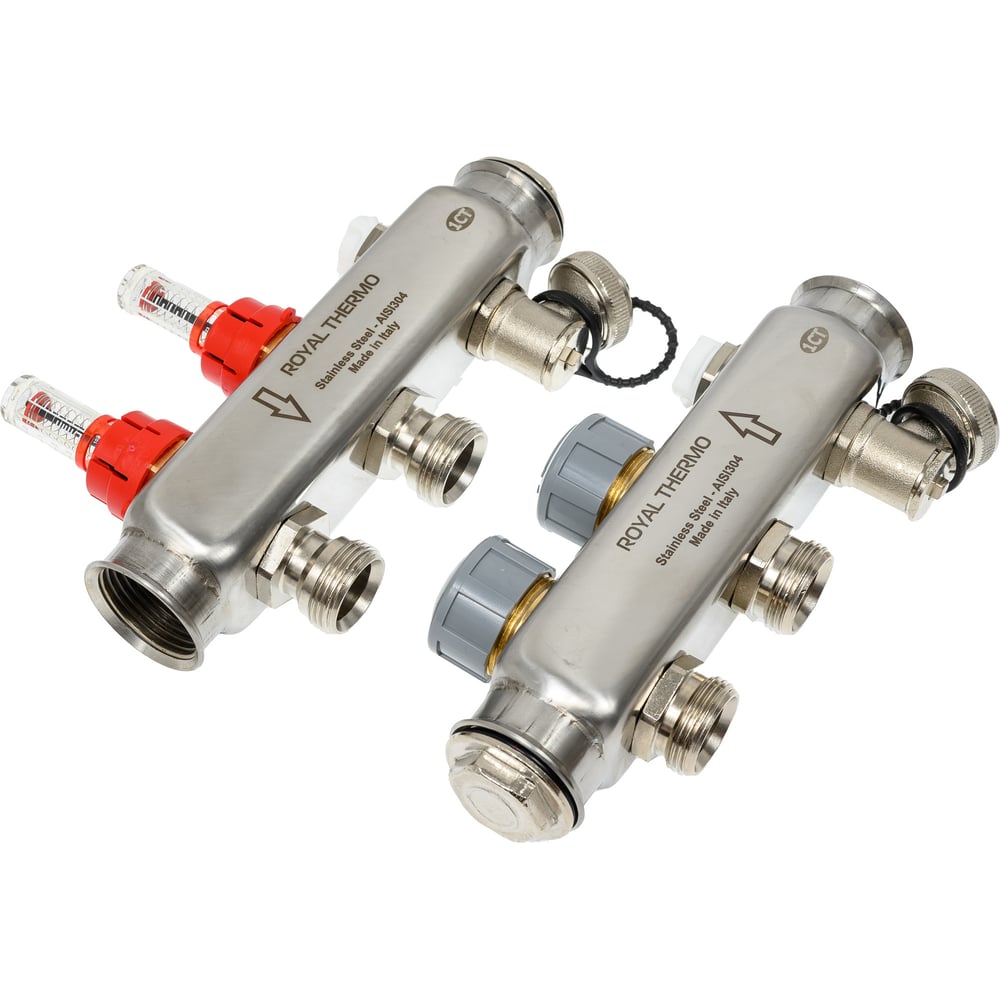 Коллектор в сборе Royal Thermo нержавеющая сталь, с расходомерами 1 ВР-3/4 НР, 2 выхода НС-1080948