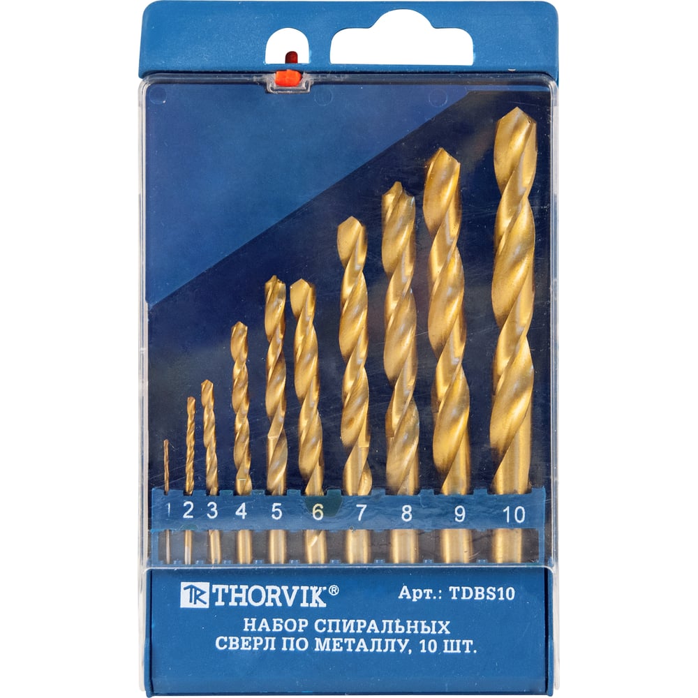 Набор спиральных сверл по металлу HSS TiN в пластиковом кейсе TDBS10 (10 шт; 1-10 мм) Thorvik 52479