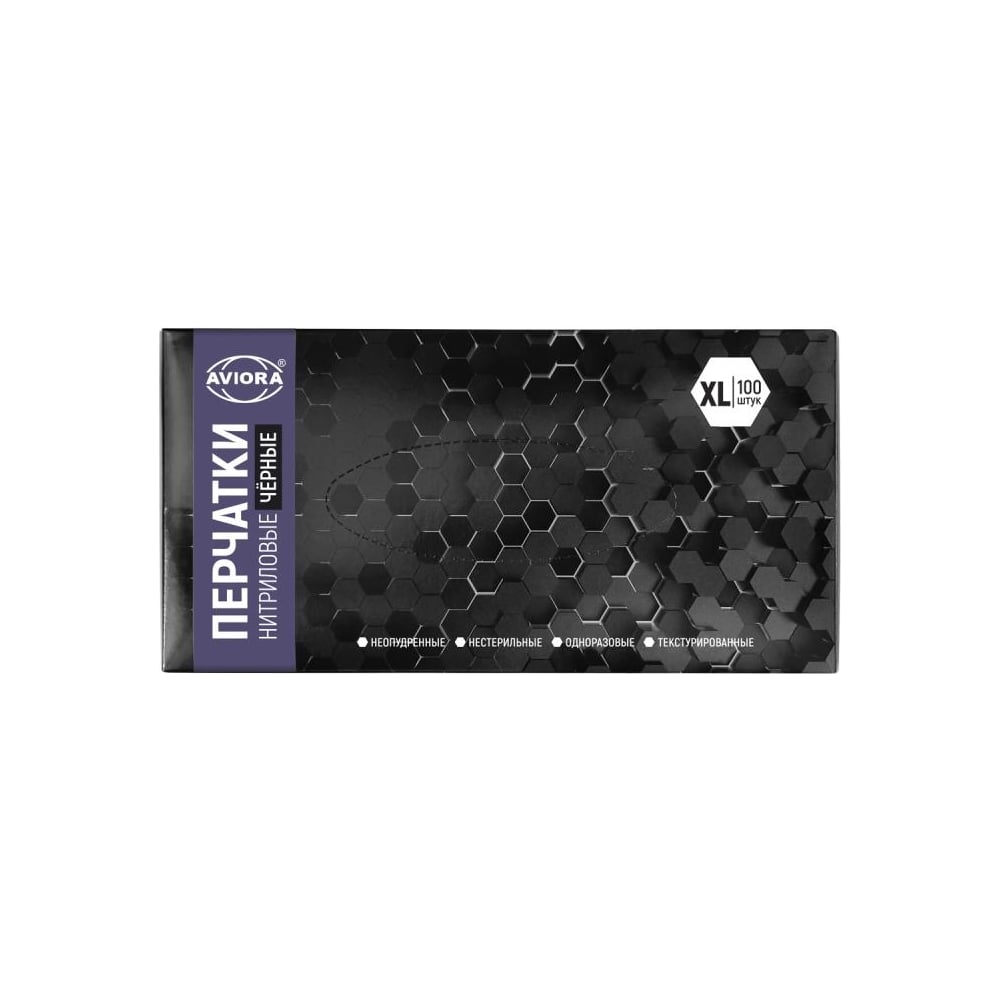 Нитриловые перчатки AVIORA, черные, 4 гр., размер XL, 100 шт. 402-797