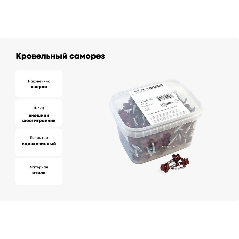 Кровельный саморез Качественный КРЕПЕЖ красное вино RAL 3005, 4.8х29 мм, 150 шт 0500127 КЧ