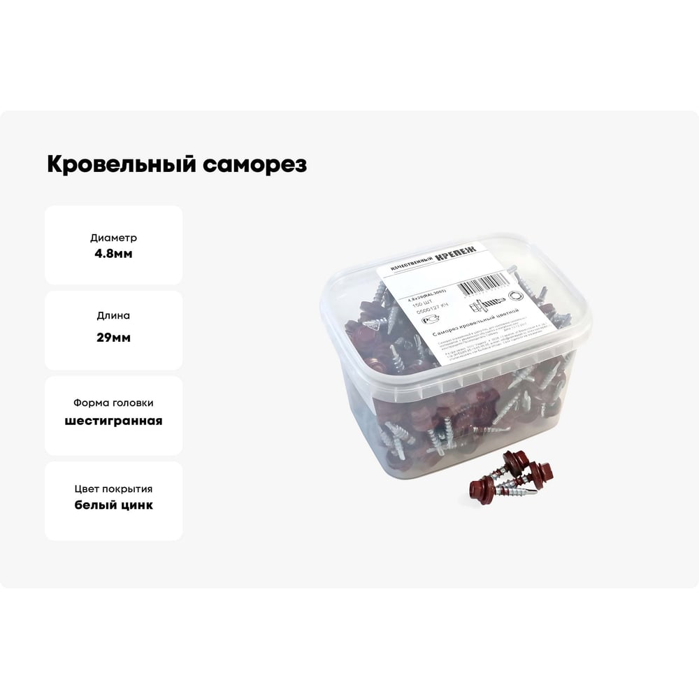 Кровельный саморез качественный крепеж 4,8/29 RAL3005150 красное вино (150 шт.) 0500127