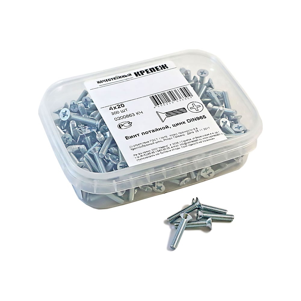 Винт Качественный КРЕПЕЖ потай с метр. резьбой, DIN 965, 4x20, 300 шт 0200863 КЧ