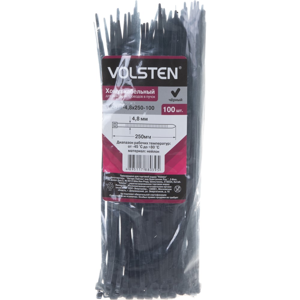 Хомут Volsten V02-1B-4,8х250-100 черный нейлон 4,8х250 100шт. 12964
