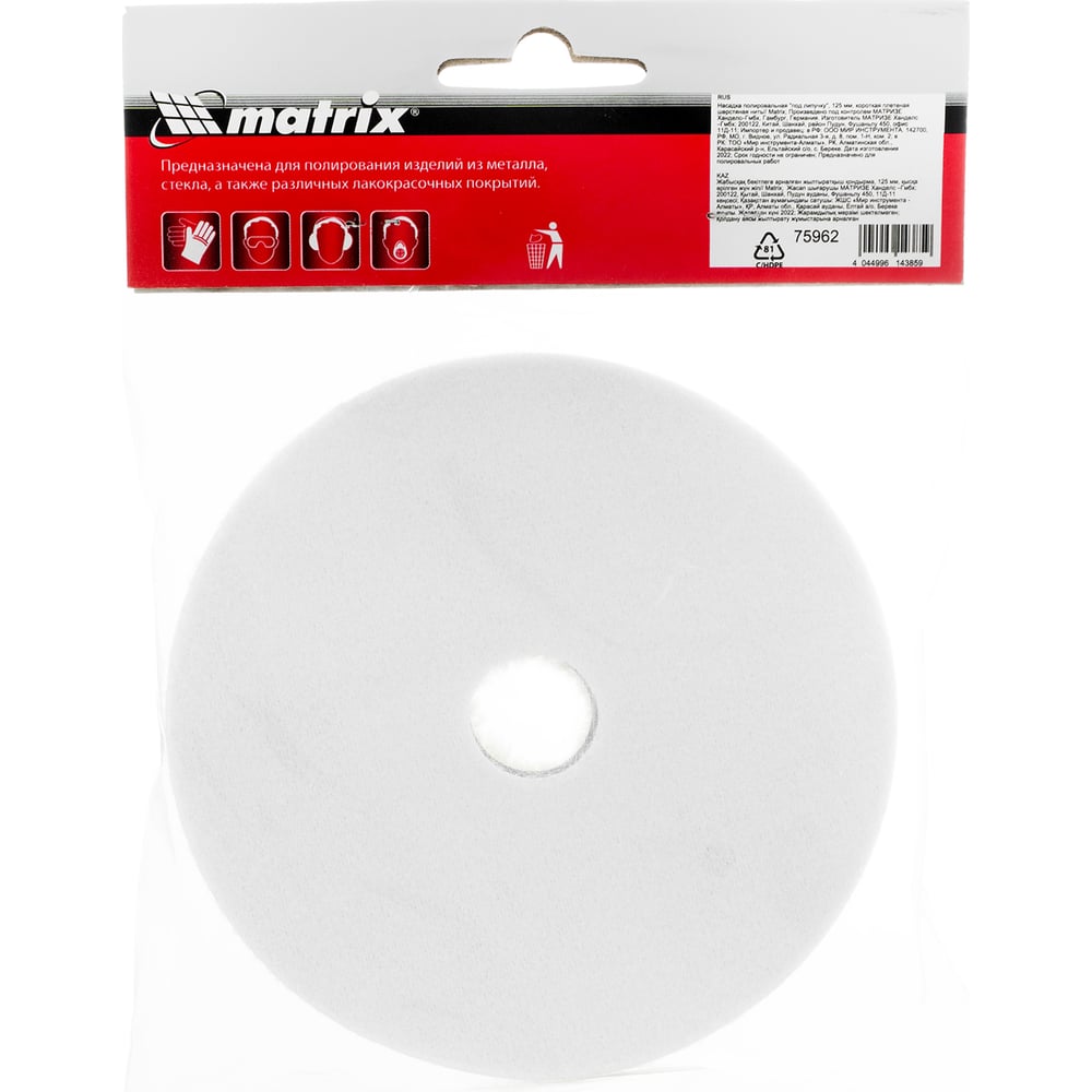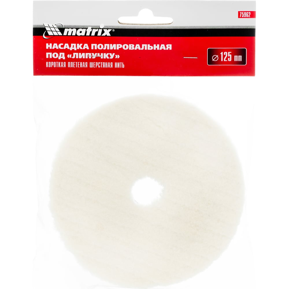 Насадка полировальная под липучку (125 мм, короткая плетеная шерстяная нить) MATRIX 75962