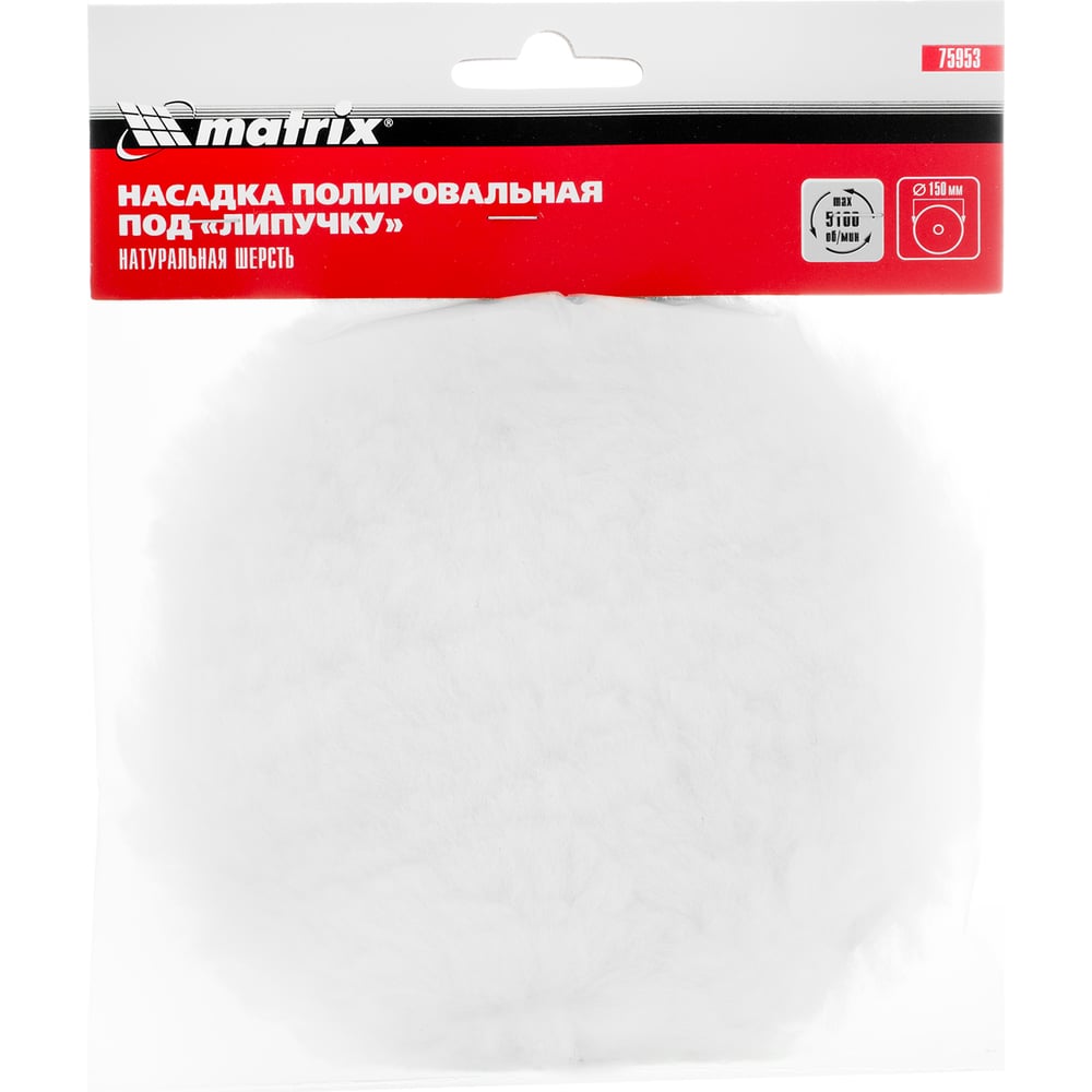 Насадка полировальная под липучку, 150 мм, натуральная шерсть MATRIX 75953