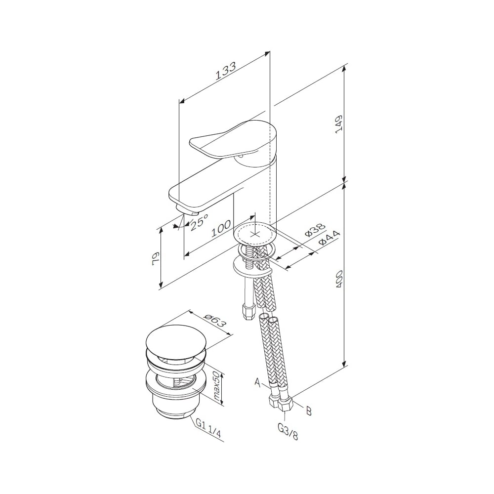 | Диаметр отверстия в раковине | 63 мм |