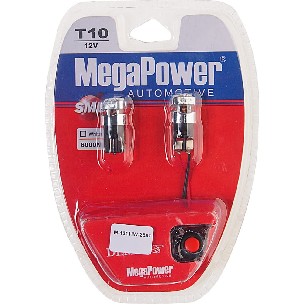 MEGAPOWER Автолампа T10W W2,1x9,5d 3 SMD 2835 WHITE блистер 2 шт 6000K 54лм 12V 1 50 10111