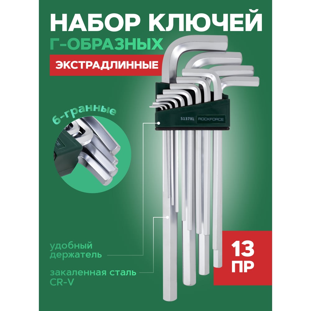 Набор ключей Rockforce Г-образных 6-гранных экстра длинных, 13 предметов RF-5137XL(27354)
