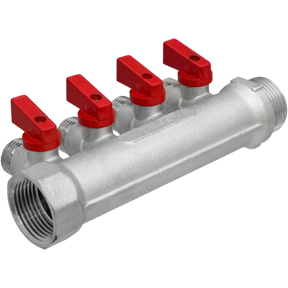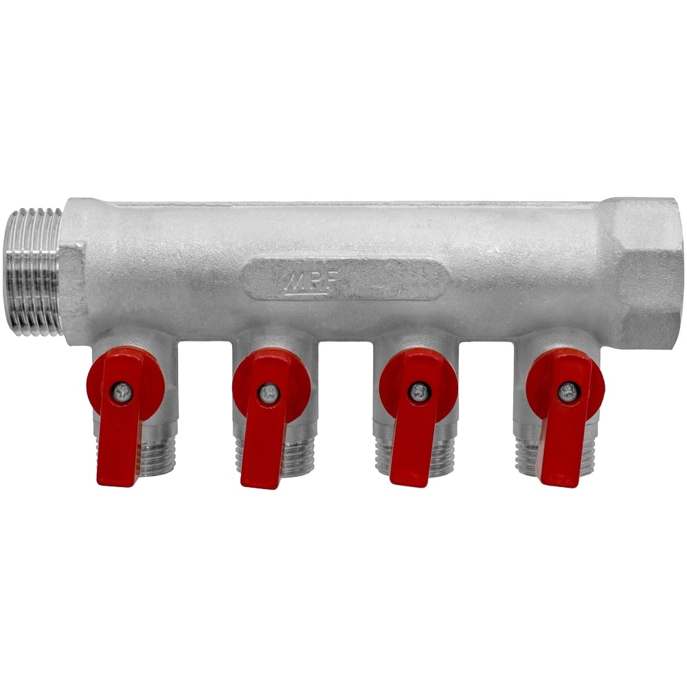 Коллектор для водоснабжения MPF 1" в/н с отсекающими кранами на 4 выхода 1/2" н, под евроконус ИС.072638