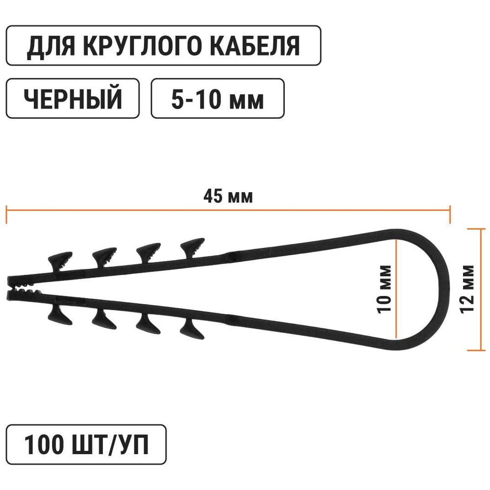 Дюбель-хомут для круглого кабеля TDM ELECTRIC ДХК-10 5-10 мм нейлон черный 100 шт. SQ0539-0002