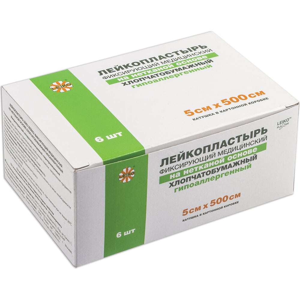 Медицинский фиксирующий лейкопластырь LEIKO в рулоне 5x500 см на нетканой хлопчатобумажной основе в картонной коробке 630258