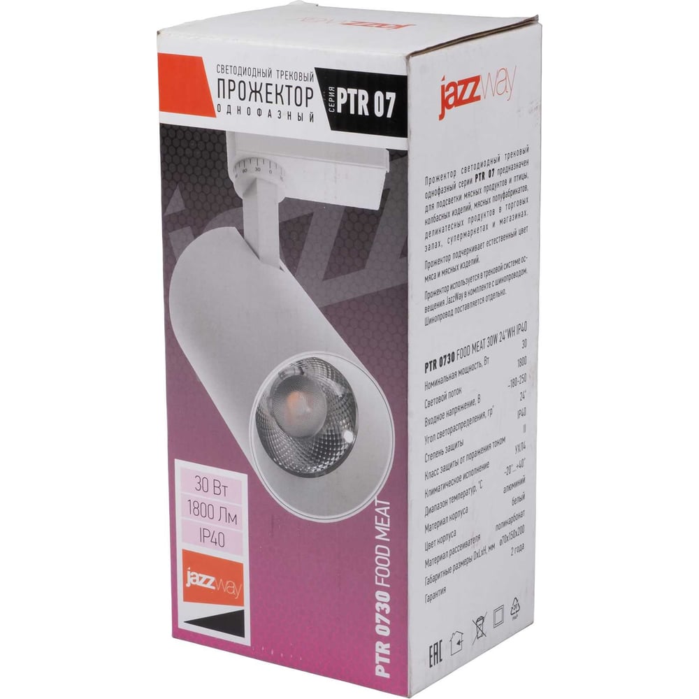 Светодиодный светильник Jazzway трековый PTR 0730 Food Meat 30Вт IP40 24град. WH белый 5026629