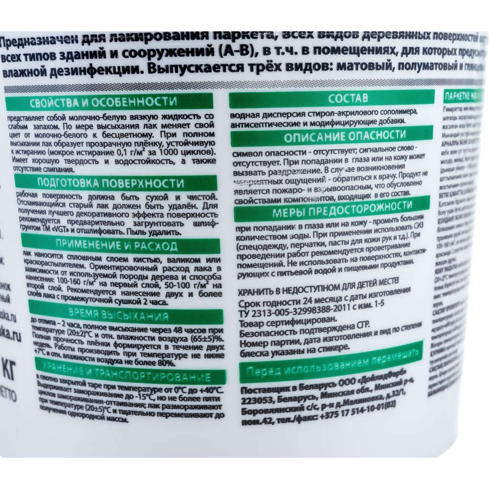 Акриловый лак VGT для паркета и дерева внутри помещений, матовый 0,9 кг 11600176