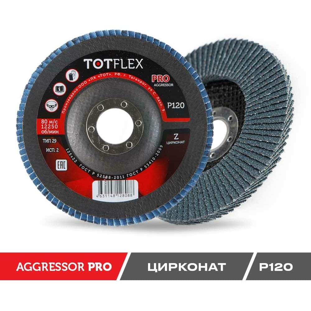 Круг лепестковый торцевой TOTFLEX AGGRESSOR-PRO 2 125x22 Z P120 4631148128088