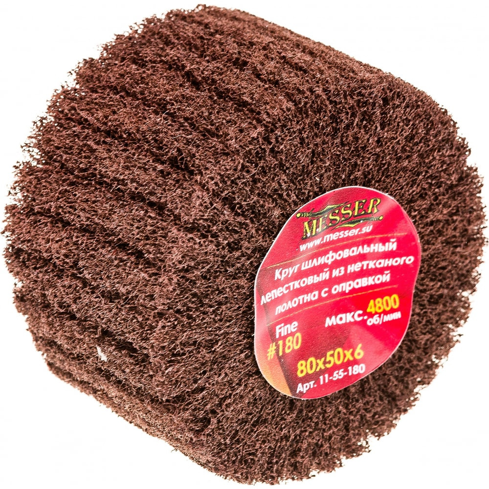 Круг шлифовальный лепестковый из нетканого полотна с оправкой на шпильке (80x50x6 мм; Fine 180) MESSER 11-55-180