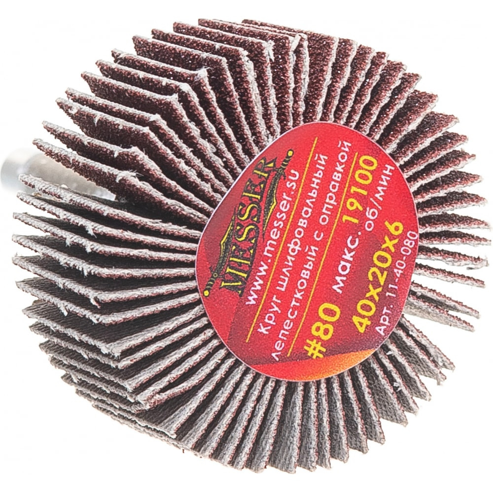 Круг шлифовальный лепестковый с оправкой на шпильке (40х20х6 мм; P80) MESSER 11-40-080