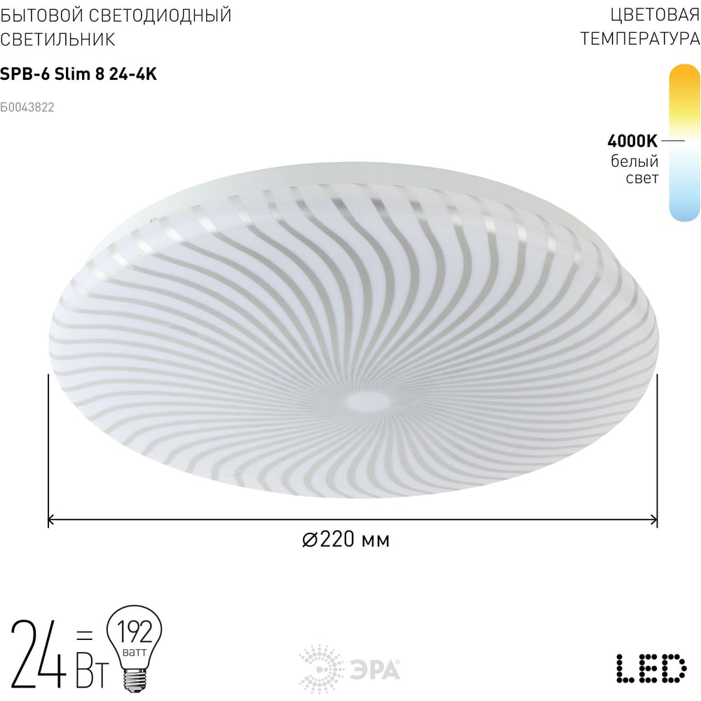 Бытовой светодиодный светильник ЭРА SPB6 Slim 8 24-4K 24Вт 4000K Б0043822