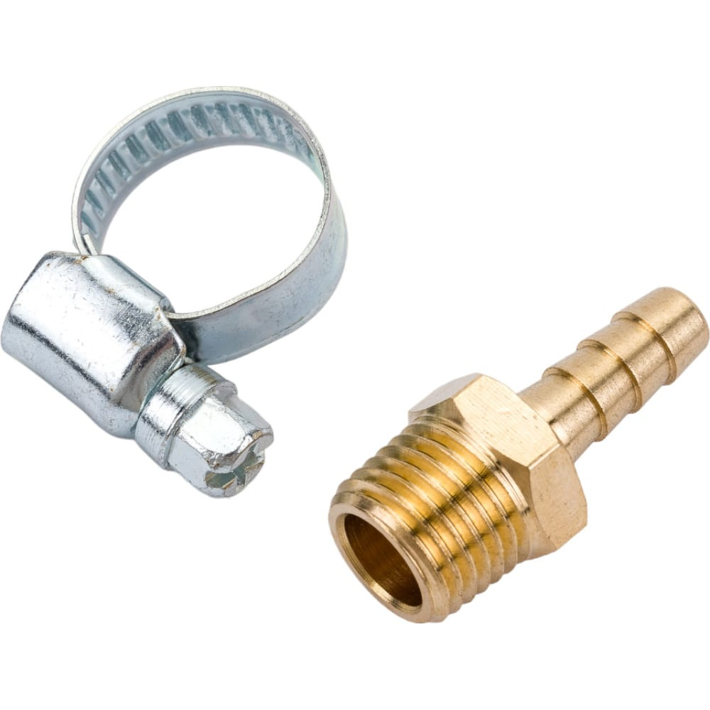 Штуцер пневматический наружная резьба 1/4- елочка 6 мм, 2 шт. + хомуты ROCKFORCE RF-MH04/04(1876)