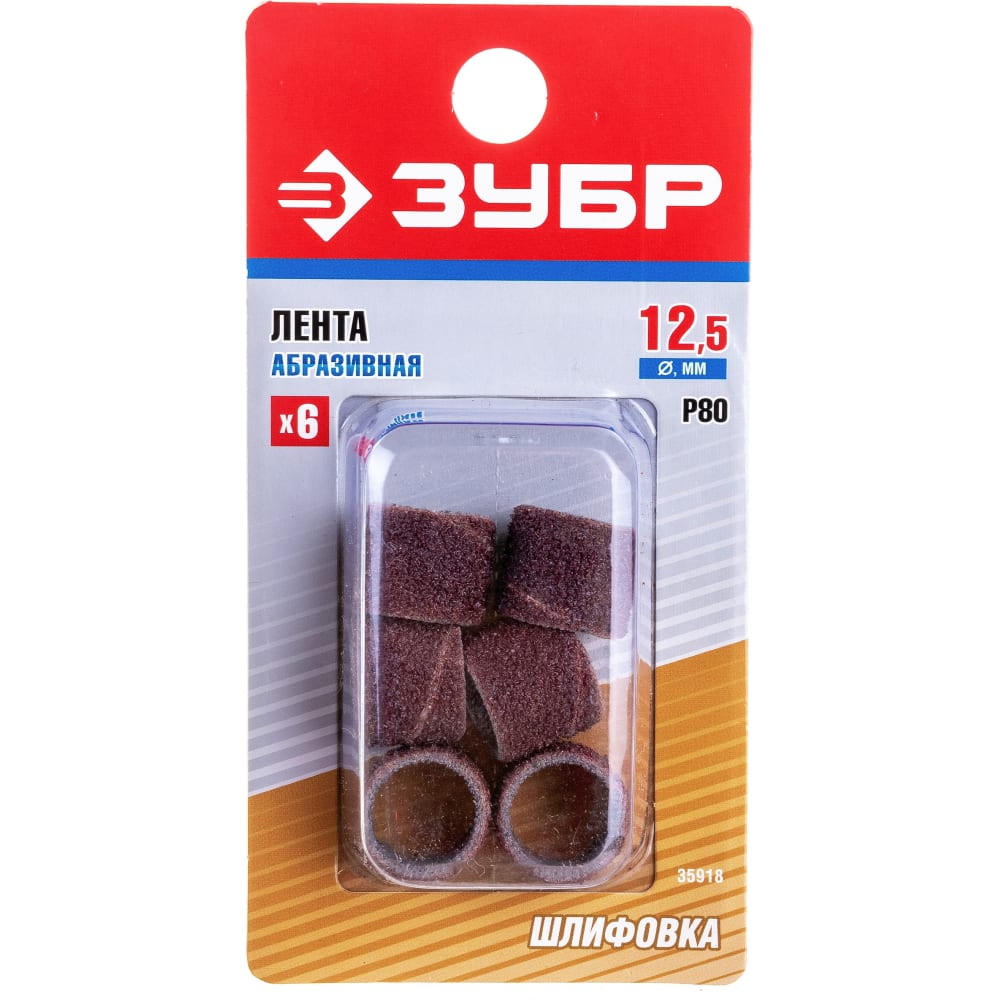 Зубр Лента абразивная, P 80, посадка d 12,5мм, L 12,7, 6шт 35918