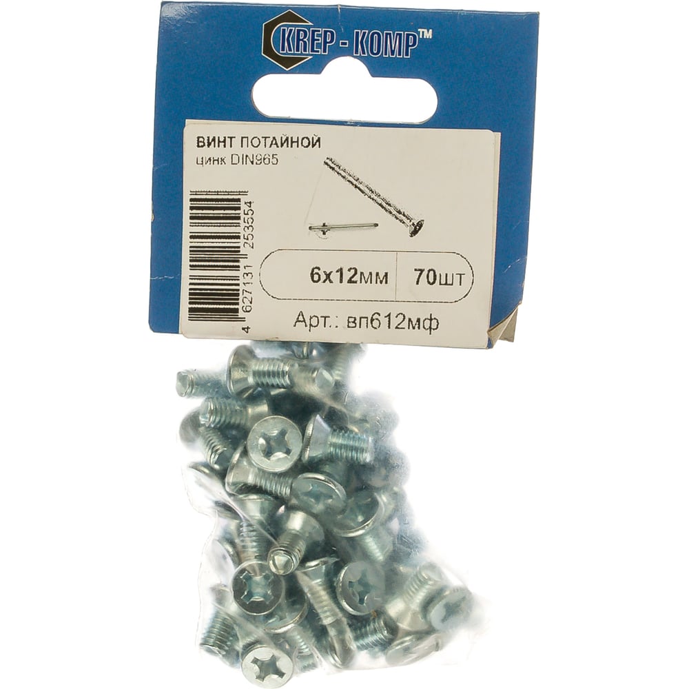 Потайной винт КРЕП-КОМП цинк DIN965 6х12 70шт вп612мф