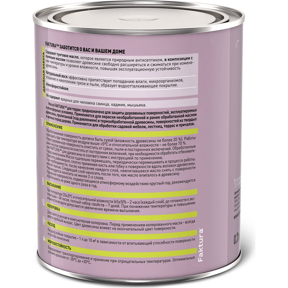 Масло для террас FAKTURA с натуральным воском и тунговым маслом 0,7л 208647