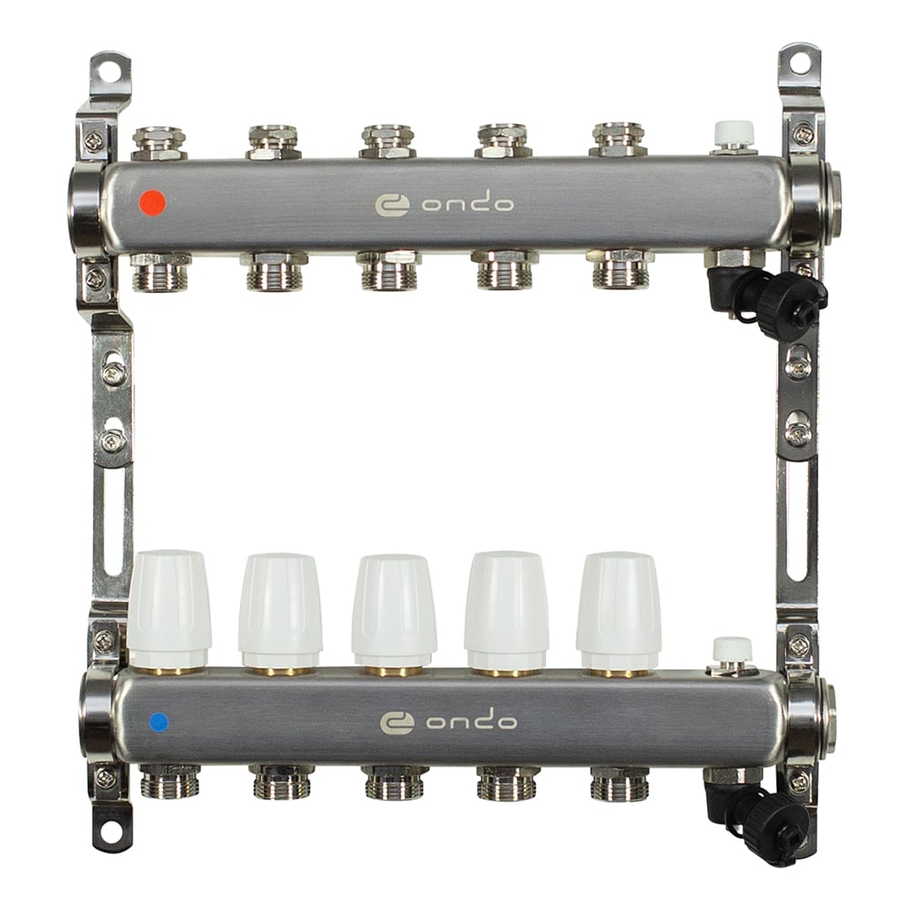 Коллекторная группа в сборе с термостатическими и запорными клапанами ONDO нерж сталь, 5 вых. OKGSP005