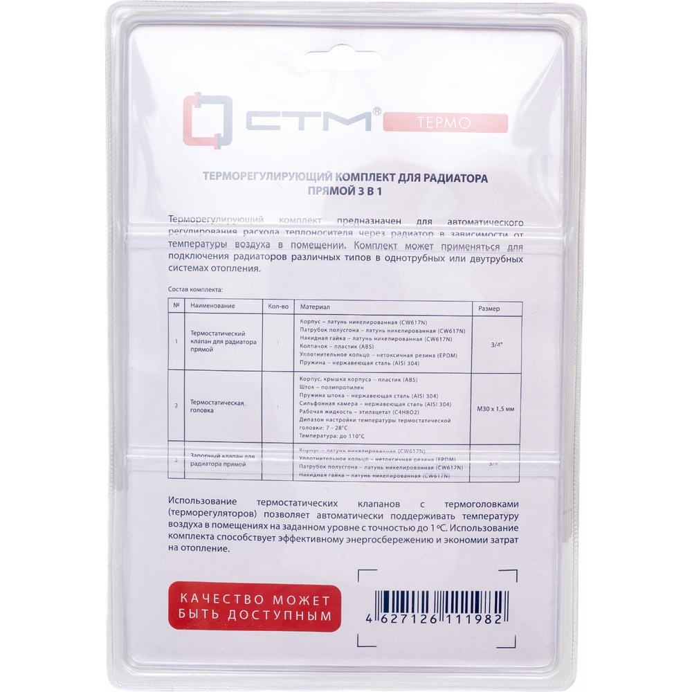 Термостатический комплект СТМ ТЕРМО для радиатора, прямой, в блистере, 3/4" CARKTS34