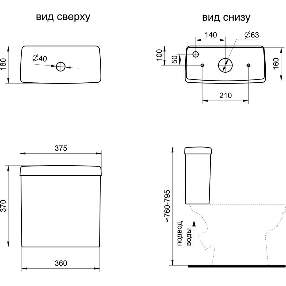 | Подвод воды | снизу бачка |
