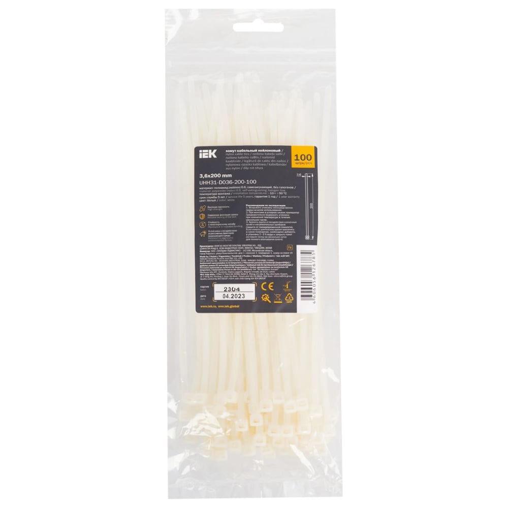 Хомут IEK 3.6x200, нейлон, белый, упаковка 100шт, ИЭК UHH31-D036-200-100