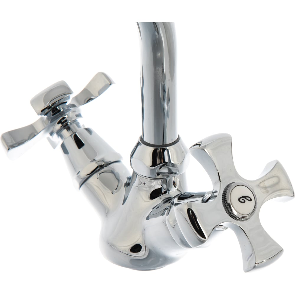 Покрытие глянцевое Цвет хром Тип установки настольный Стиль классический Материал корпуса латунь Серия Бальзамин Поворотный излив да Назначение для кухни Тип крепления на гайку Гибкий излив нет Высота смесителя 265 мм Лейка нет Термостат нет Встраиваемый нет Подводка в комплекте гибкая Аэратор да Переключатель на фильтр нет Тип смесителя двухрычажный Форма излива воды традиционная Запорный клапан керамическая кран-букса Форма смесителя округлая Выдвижной излив нет Излив есть Складной нет С щеткой нет Двойной излив нет Размер крепления G1/2 Направление струи вертикальное Расположение термостата без термостата