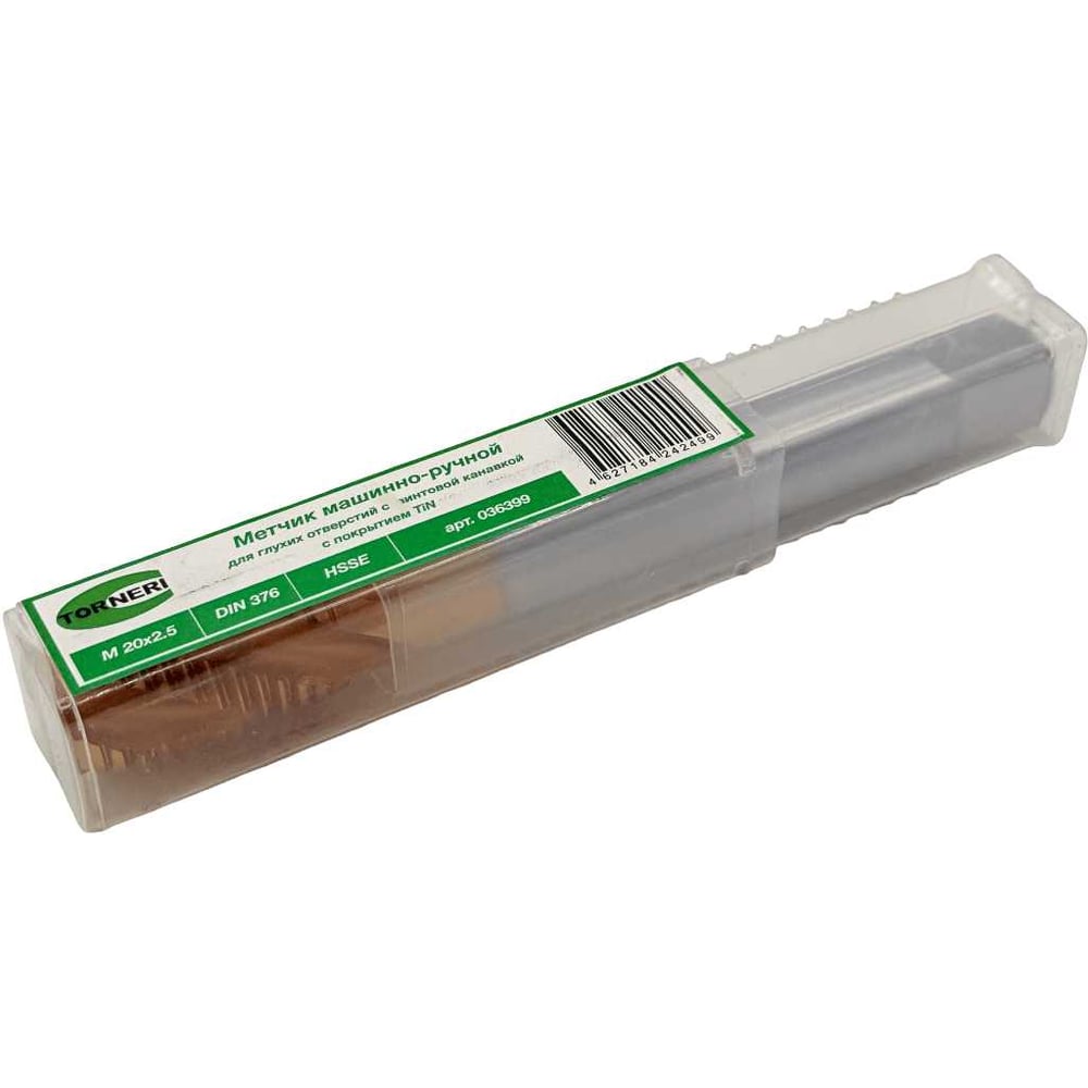 Метчик машинно-ручной TORNERI, М20х2,5, HSSE, 6H, DIN376, TiN, с винтовой канавкой для глухих отверстий, 036399