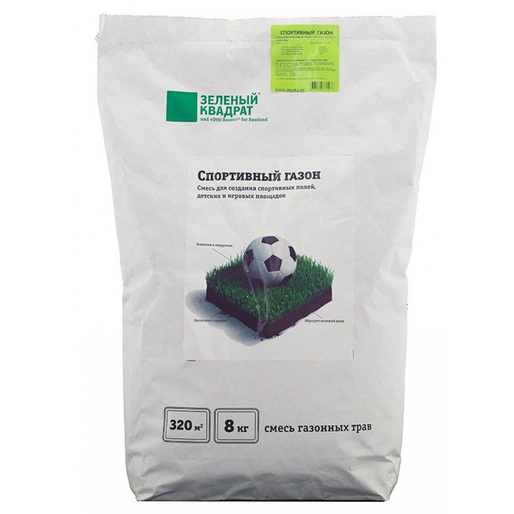 Газон для спортивный полей, детских и игровых площадок Зеленый квадрат СПОРТИВНЫЙ 8 кг, 4607160331478