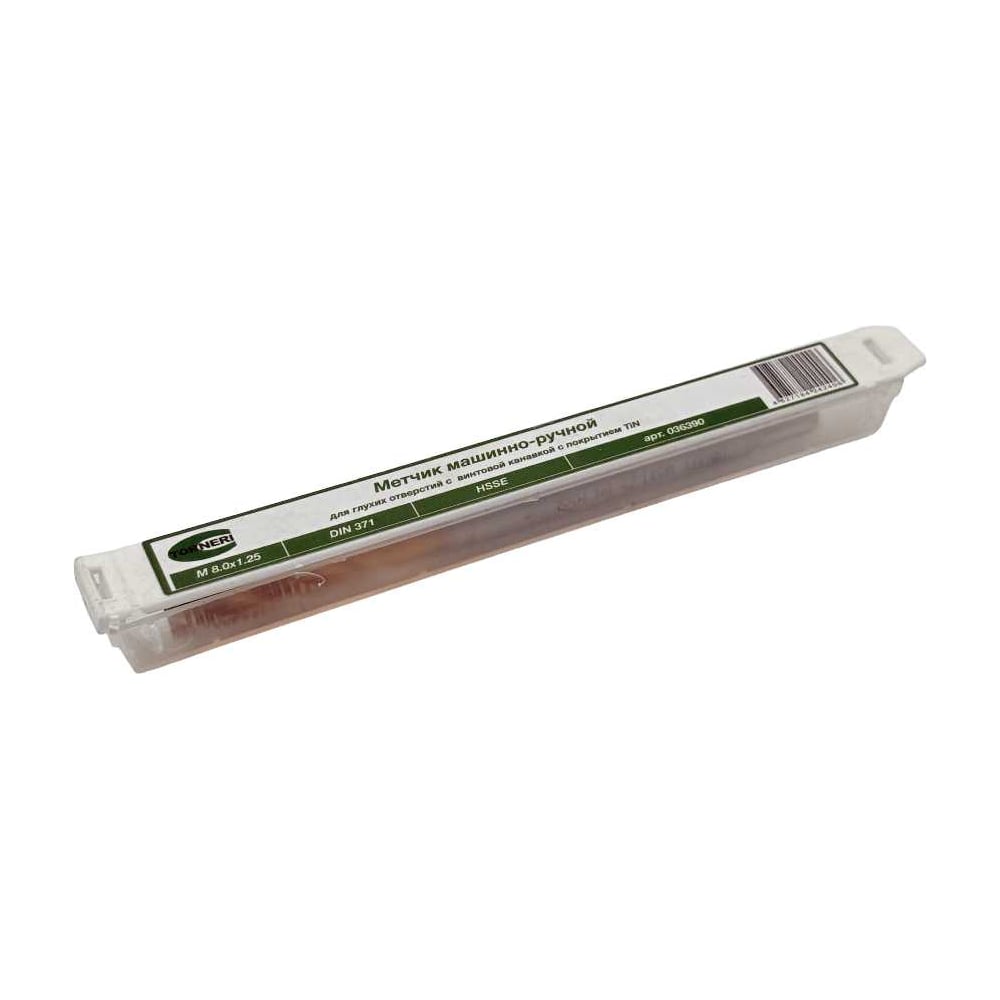 Машинно-ручной метчик TORNERI М 8х1.25 HSSE 6H DIN371 TiN с винтовой канавкой для глухих отверстий 036390