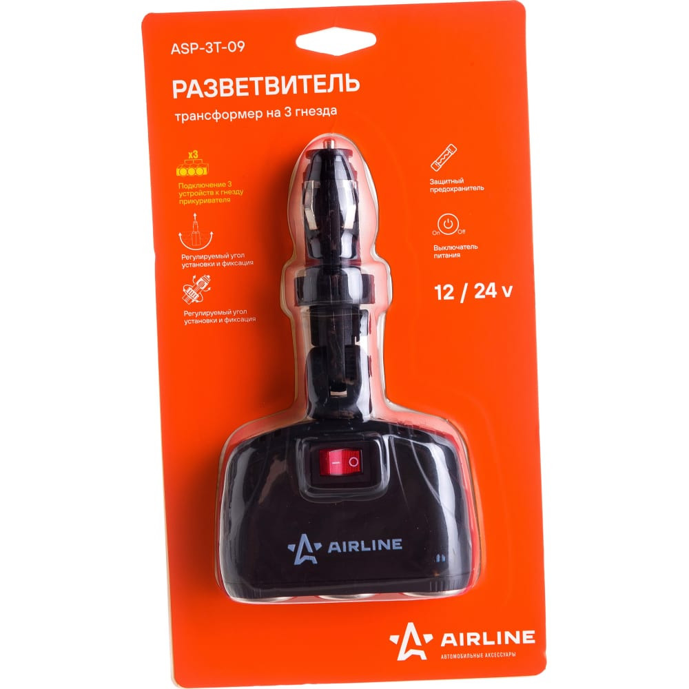 Прикуриватель-разветвитель Airline ASP-3T-09