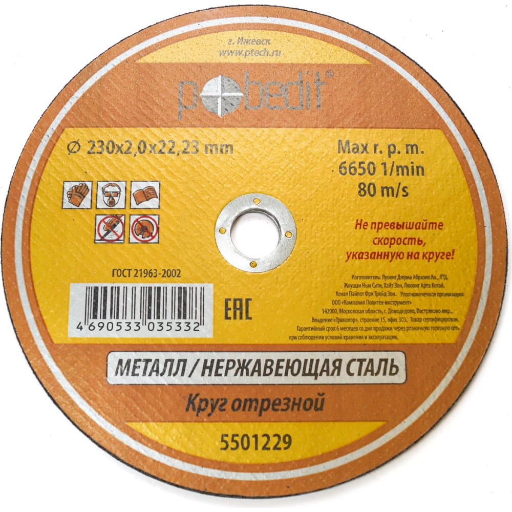 Круг отрезной по металлу Pobedit 5501229