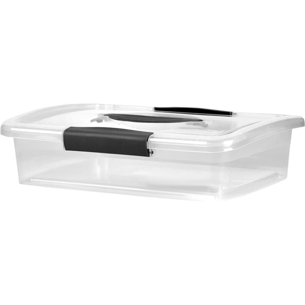 Ящик Blocker п/п 370х274х95 5л. для хранения, с крышкой, на клипсах, с ручкой цв. прозрачный кристалл 36201