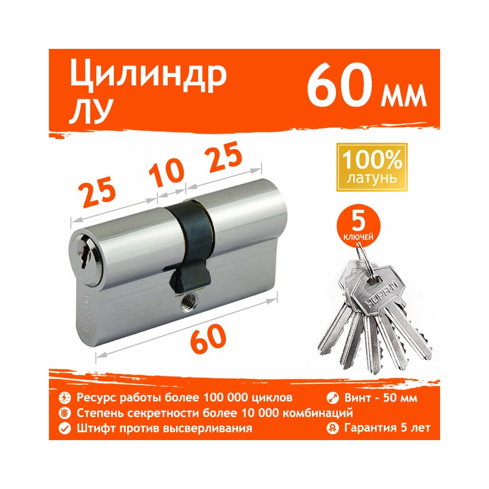 Цилиндровый механизм НОРА-М ЛУ-60 30-30 хром Х 5319