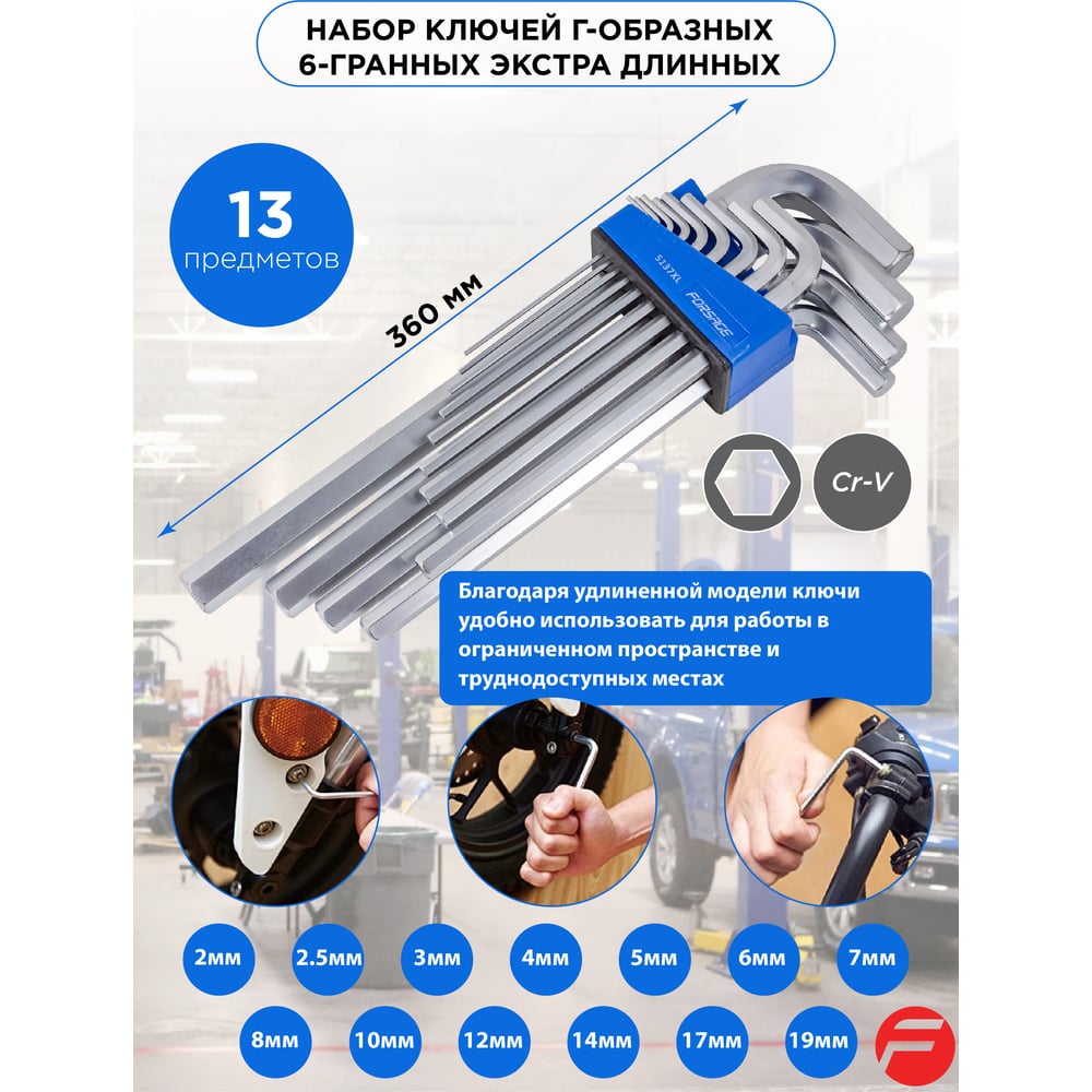 Набор Г-образных 6-гранных ключей Forsage экстра длинных 13 предметовв пластиковом держателе F-5137XL(8710)