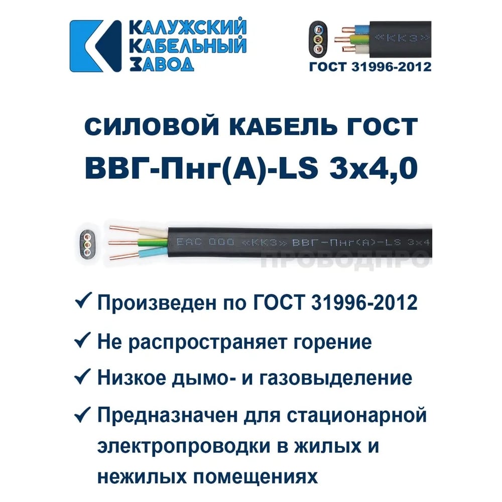 Кабель ВВГ-Пнг (A) 3x4 ККЗ (100м) KKZ40-00000229