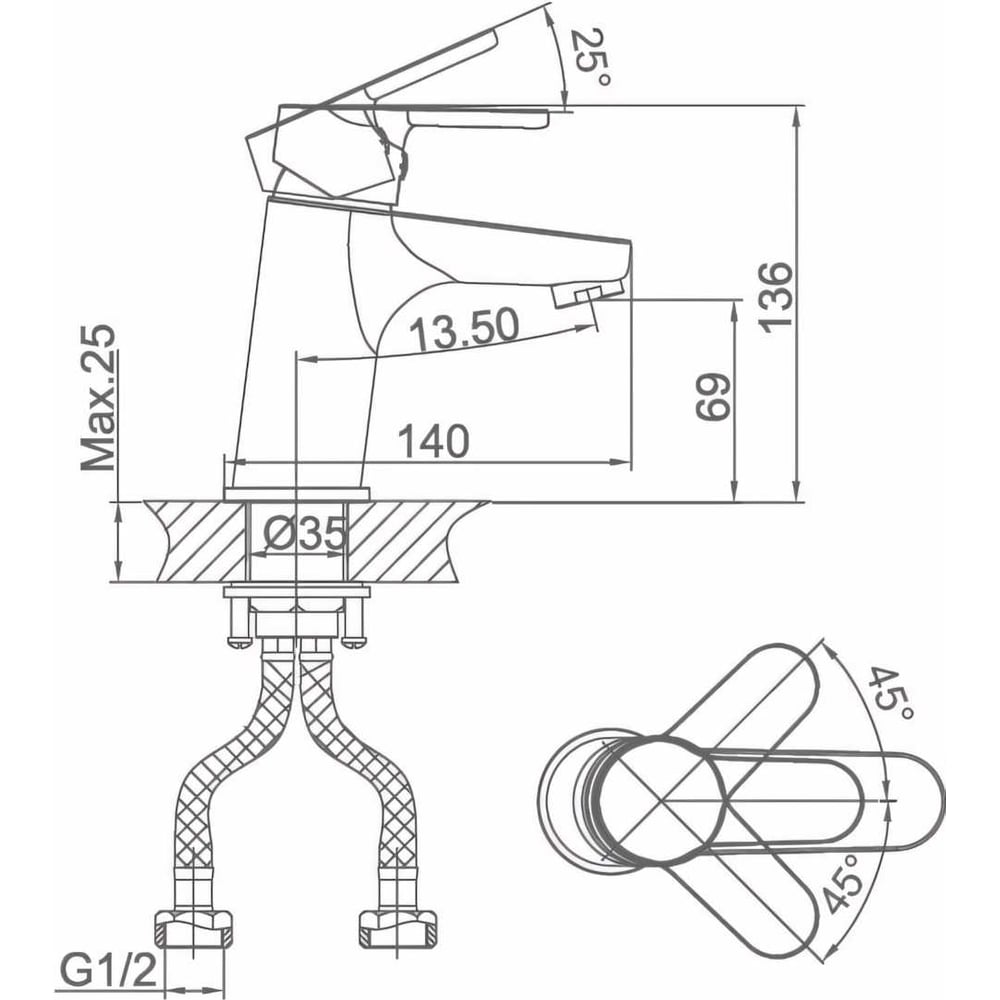 | Диаметр отверстия в раковине | 35 мм |