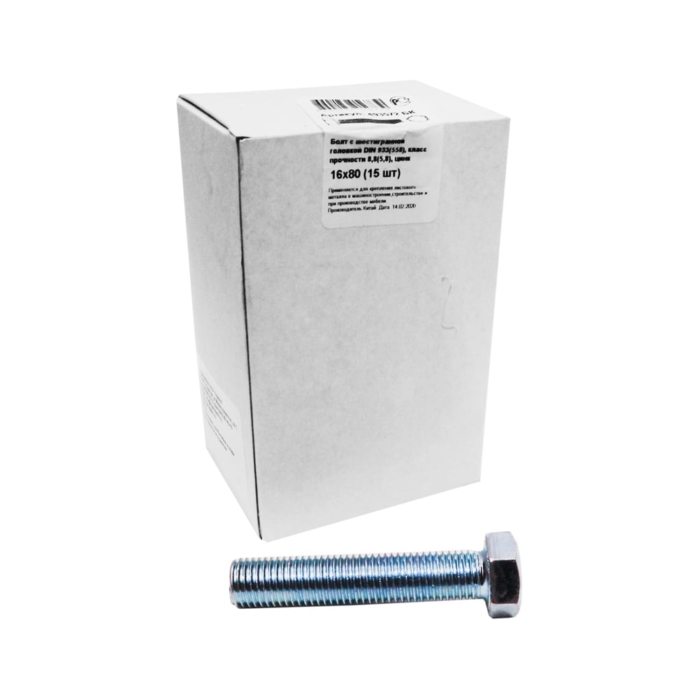 Болт с шестигранной головкой Крепежная техника полная резьба, DIN 933 558, 16х80, цинк, 15 шт. 493572 БК