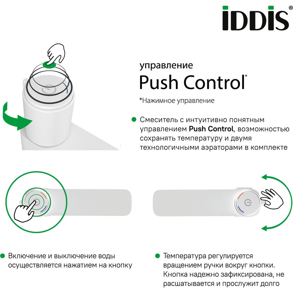 IDDIS Смеситель для умывальника с инновац. упр. Push Control, белый матовый, Slide, SLIWTBTi01